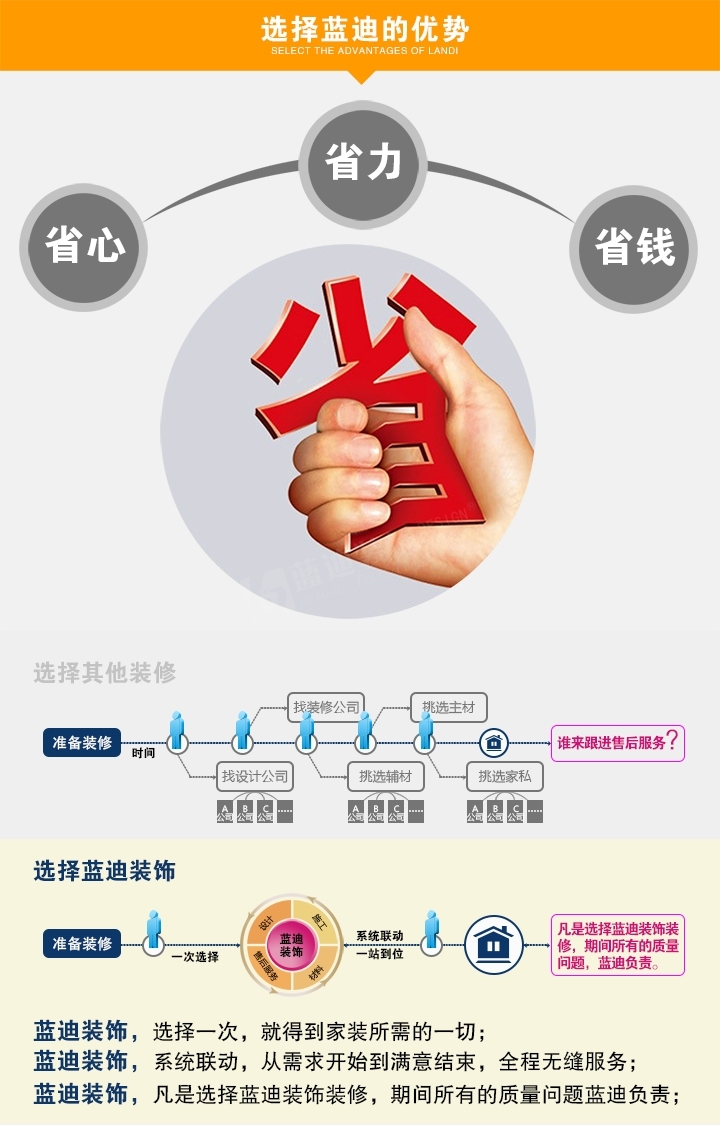 诚信、平价、服务、品质,是珠海蓝迪装饰屹立珠海的基础,公司有着多年丰富装修设计、施工经验。以专业、独特、的服务赢得业主的青睐,以朴实严谨的敬业精神赢得客户的赞誉,我们愿以诚爱之心,随时准备为您提供全方位的服务,打造最好珠海装修公司第一品牌。